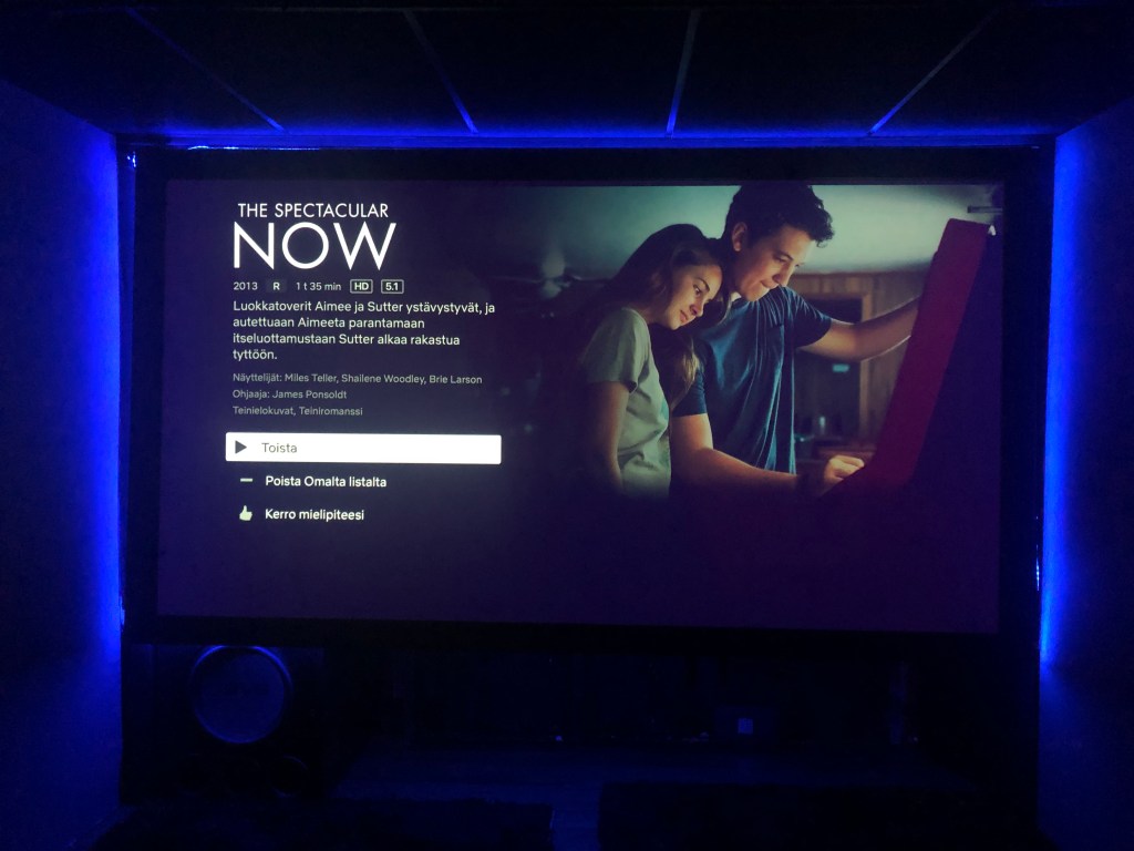 Ei muuta kuin Atmos demo pyörimään. Ja sen jälkeen pettymys oli valtaisa. Joo SVS on varmasti loistava subbari, mutta tämä ei kuulosta hyvältä. Välittömästi tuli jotenkin tyhjä fiilis, huoneen etuosa on kuin ontto ja basso jää todella vaisuksi. Joo, bassoa on, mutta sen selkeästi tunnistaa tulevan takaa ja jättää skriinin tyhjäksi. Tuolini ovat massiiviset ja subbari siis jää niiden taakse. Tällä varmasti on jotain tekemistä asian kanssa. Päätän kuitenkin antaa SVS:lle mahdollisuuden ja kaivan Netflixistä jo jonkin aikaa odottaneen Dolby Atmos leffa Wheelmanin. Ja tähän väliin välikommentti, päivitin myös AppleTV:n softan (Beta), ja tällä kertaa Netflixin Atmos raita ei pätkäissyt kertaakaan. Johtuiko sitten tästä vai jostain muusta, mutta toivottavasti näin myös jatkossa.