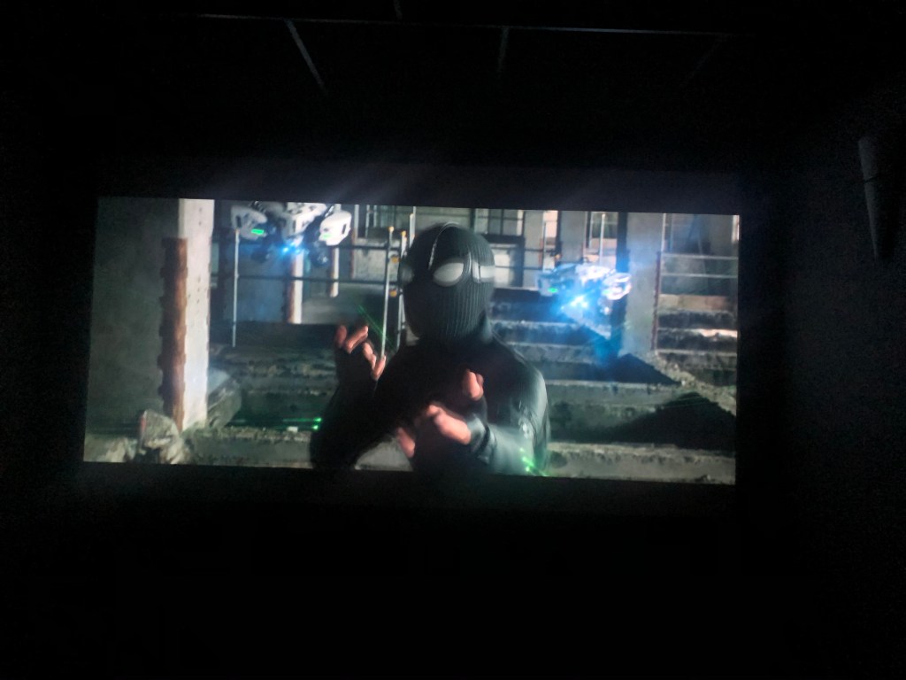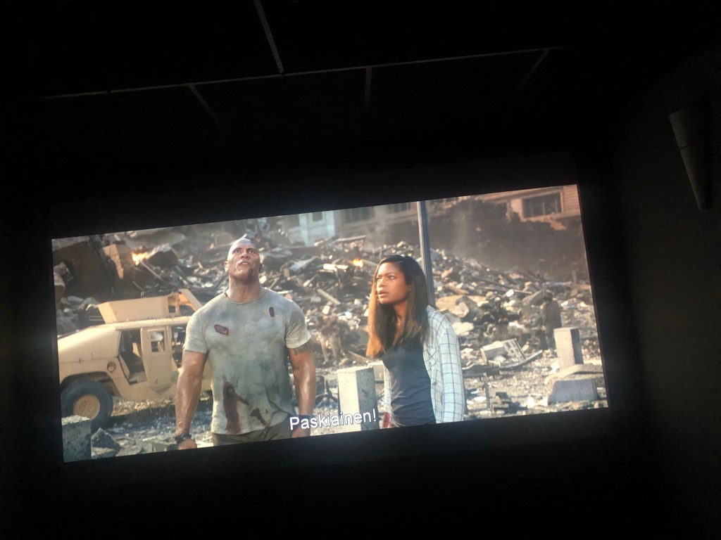 Leffahuoneessa samantien ensimmäinen kysymys oli että laitetaanko leffa pyörimään, no ei tarvinnut kahdesti kysyä. Ensimmäisenä katseltiin hetken aikaa Bohemian Rapsodyä, joka on kyllä hyvä leffa ja äänetkin toki ihan hyvät. Leffa ei ehkä kuitenkaan ole aivan sitä mitä halusin kuulla, joten nopeasti osattiinkin tarjota jotain muuta. Ready Player One, onkin sitten juuri sitä, mitä kutsutaan demomateriaaliksi. Leffahuoneesta löytyy Denonin 8500 malli, jota olen itsekin salaa haaveillut, tämä siis osui kuin se kuuluisa nenä päähän. Kaiuttimet eivät olleet sitä kalleinta heiendiä, vaan nimenomaan sitä luokkaa, jota itsellänikin huoneesta löytyy. Mielestäni hyvä valinta tälläisessä huoneessa nimeomaan esitellä hyvää tavaraa siinä hintaluokassa mistä moni varmasti aloittelee omaa harrastustaan.