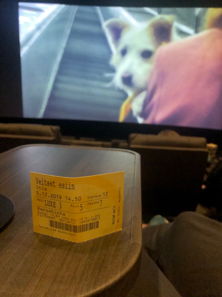 Pitkästä aikaa jälleen elokuvateatterissa ja tänään ensimmäistä kertaa Itiksen Luxe salissa. Pitkästä aikaa kiva olla leffassa, mutta toisaalta eipä tarvitse taas pitkään miettiä miksi mielummin katson leffoja kotona. Yritin saada paikan mahdollisimman keskeltä niin, että ihan vieressä ei istuisi kukaan. No, vaikka ostin paikkani aika myöhään, niin viereeni löysi vielä pari nuorta neitiä, jotka yllättäen olivat ostaneet kaikista kovinta ääntä pitävät sipsipussit mitä löytyy. Äänekkäitä sipsipusseja löytyi myös monelta muulta, joten leffan äänistä ei tällä kertaa ihan täysin päässyt nauttimaan. Asia ennen kaikkea tänään korostui siinä mielessä, että leffassa pääosassa ei olleet äänet, vaan dialogi.