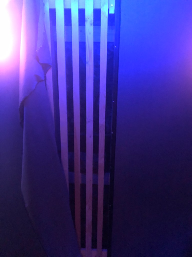 Kankaiden takana diffuussoreina toimivia listojaListat pois ja tilalle hieman tiivistä villaa.