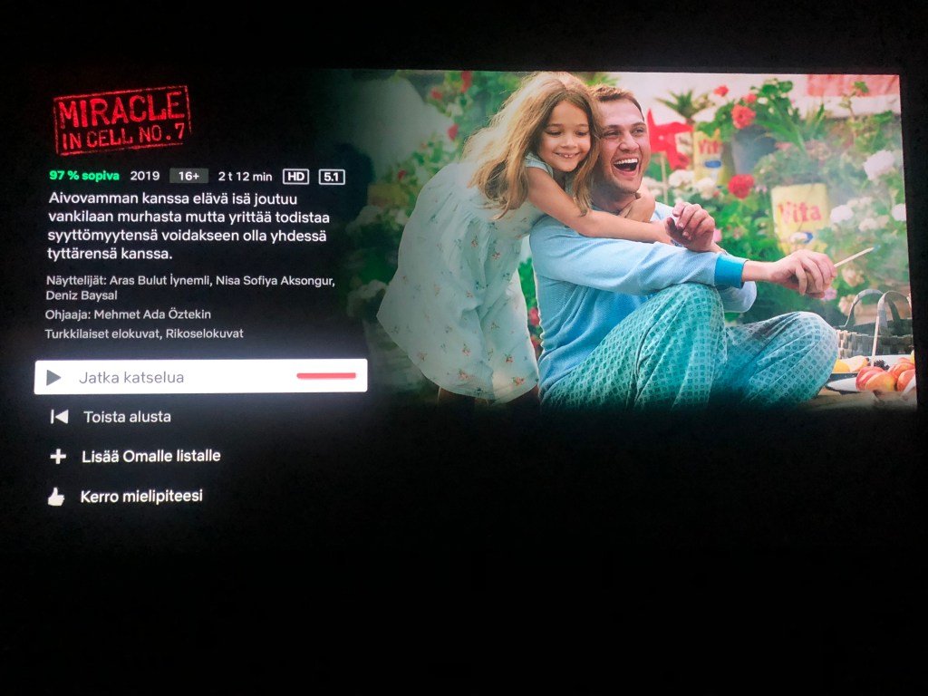 Jos nyt vielä mietit mitä seuraavaksi katsoisi, niin suosittelen kaivamaan tämän leffan Netflixistä esiin. Toki kaikilla on oma leffamakunsa, mutta itselleni tämä upposi kuin kuuma veitsi voihin. Erittäin surullinen elokuva, joka kuitenkin lopulta jätti onnen kyyneleet poskille.