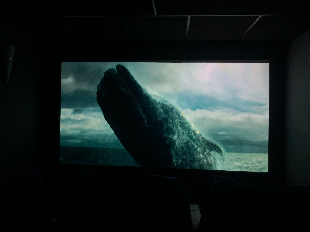 Leffa oli Atmos-äänillä, ja sen kyllä taas huomasi. Leffan äänet olivat erittäin esimerkilliset, ja ennen kaikkea todella tarkat ja napakat. Kaikki laivassa kuulosti enemmän kuin aidolta, oli kyse sitten mastojen natinasta ja köysien nitinästä. Jostain syystä myös meren äänet ovat aina niin vakuuttavat, oli kyse sitten valaista tai sukellusveneistä. Luonto vaan on niin pelottavan jylhä ja massiivinen, että leffoissakaan ei tarvita erikoistehosteita, vain luonnosta syntyviä oikeita ääniä. Tämä leffa oli mitä suurinta nautintoa korville alusta loppuun asti.