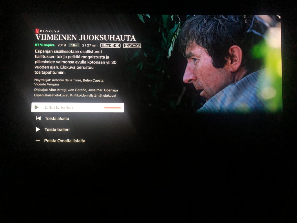 Yksi asia mikä aina itseni saa nykyään voimaan pahoin (ei kirjaimellisesti) on Netflixin surkea kuvanlaatu osassa elokuvia. Ymmärrän, että leffat ovat erilaisia ja tämäkin leffa hyvin tumma sävyltään, mutta silti tälläistä kuvaa ei koskaan tule vastaan Itunesin puolella esimerkiksi. Harmi, sillä tämäkin elokuva olisi voinut olla miellyttävämpi katsella, jos kuvanlaatu olisi ollut parempi. Jälleen kerran kuitenkin muistutan, ongelma ei välttämättä ole vain Netflixin, vaan osa ongelmaa voi olla myös oma netti. Tuon asian kanssa ei kuitenkaan koskaan tunnu olevan ongelmia Itunesin kanssa, mikä sitten taas toisaalta hieman ihmetyttää.