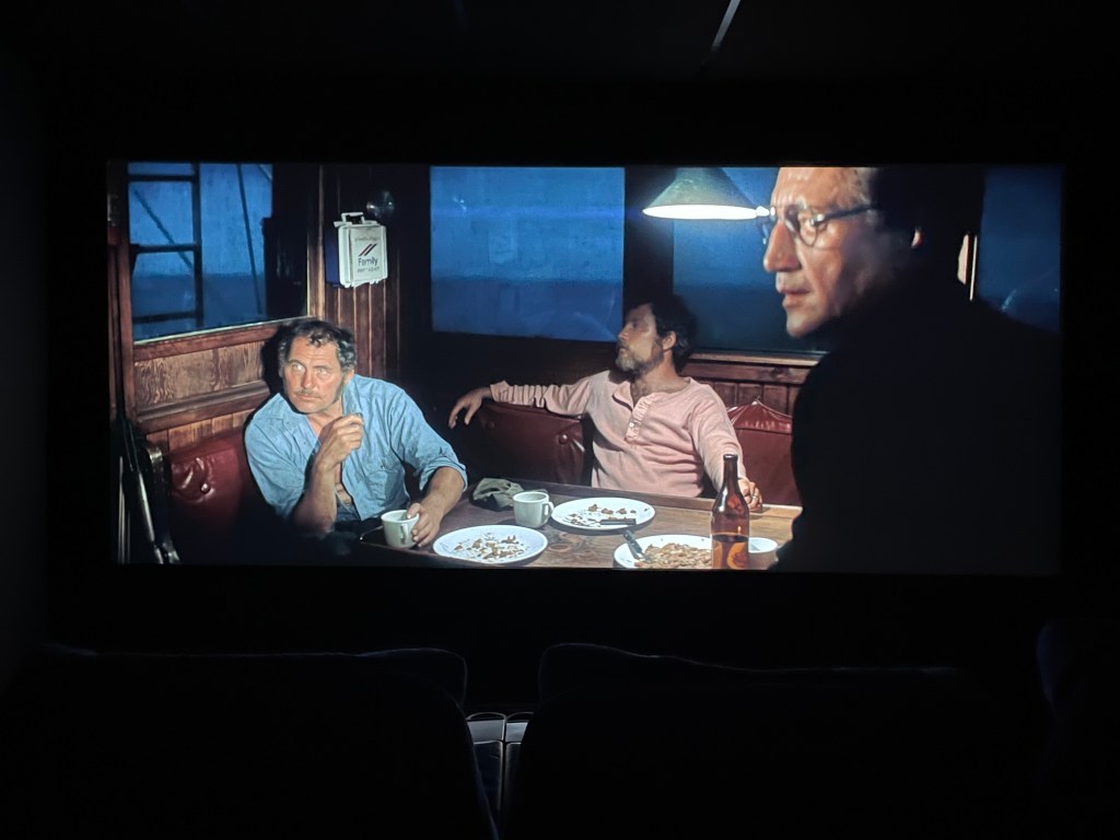 Jaws leffaa on hehkutettu etenkin se restoroinnin loistokkuudesta ja pakko todeta että kyllä näytti hyvältä. Jos poistetaan laskuista muutamat elokuvan iästä muistuttavat asiat kuten vaatetukset ja muut tyylit, leffa oli kuin suoraan 2020-luvulta. Kuvanlaatu oli järjettömän hyvää ja tyylikkäästi tehtyä. Aivan en ole asiaan perehtynyt, mutta käsittääksen osa vanhoista leffoista on filmattu niin, että tämä on mahdollista, olettaisin, että niin tämäkin. Äänet olivat ihan ok, mutta ehkä pieni pettymys. vaikka mitään isoja odotuksia nyt ei kyllä ollutkaan. Leffan äänet olivat aika peruskauraa, eikä mitään erityisen hienoa tullut vastaan, vaikka muutamassa kohdassa olisin jotain ehkä odottanutkin. Hyvä, mutta ei erikoinen.