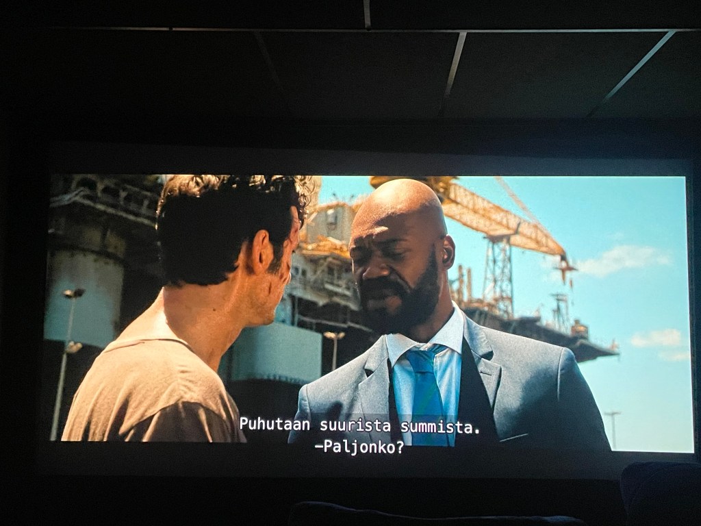 Espanjalaista Netflixistä, ei voi mennä vikaan, eikä muuten mennyt tälläkään kertaa. Tällä kertaa itse asiassa mentiin vielä kaiken lisäksi suoraan sinne ihan huipulle, oli nimittäin kyseessä sen kaliberin leffa, että taidanpa laittaa sen suoraan myös Top-listalle asti. Leffa kertoo.. Hmm.. Kertoo siis kaverista joka lähtee Afrikkaan neuvottelemaan terroristien kanssa ja lopulta päätyy monien kierteiden kautta sellaisten soppaan, josta ei käänteitä puutu. Lukematta leffan storylinea on itseasiassa todella vaikeaa edes kuvailla kaikkea mitä tässä leffassa tapahtui, leffa nimittäin oli niin monimuotoinen ja juonellisesti mielenkiintoinen. Tämä oli vaihteeksi taas yksi niitä leffoja, jonka aikana kännykkää ei tullut edes otettua esille muuta kuin parin kuvan ottamista varten ja silloinkin tunne oli heti että jotain jää nyt näkemättä.