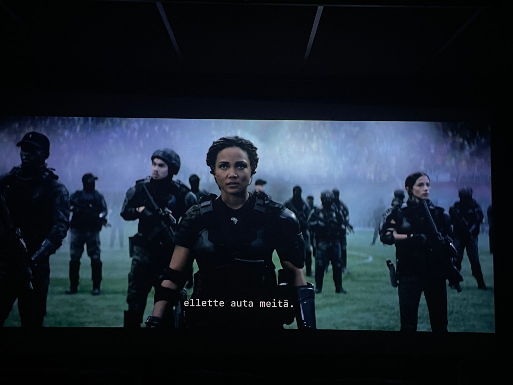 Mennään kuitenkin seuraavaksi sitten siihen yhteen kuumaan perunaan miksi leffassa ylipäätään vielä käyn, ja se on luonnollisesti pieni benchmarkkaus ääniin, ja ennen kaikkea nyt on hienoa kun läheltä kotia löytyy yksi minun asteikolla laadukaskin sali, eli Biorexin Prime. Leffan alussa oli Dolby Atmos demo, joka sikäli oli hyvin mielenkiintoista kuulla, että juuri ennen lähtöä kotoa tuli tuo aivan sama demo katsottua kotona. Ja kyllä muuten hymyilytti, ja tällä kertaa hymyilytti etenkin sen vuoksi, että tuo kyseinen demo kuulosti kotona aivan samalta tai rehellisesti sanottuna jopa vielä paremmalta. Uskomatonta, mutta näin se nyt vaan on todetta. Kerron kohta tähän vielä toisen mahdollisen syyn. Mutta sitä ennen, mennään vielä itse leffaan. Nyt nimittän vuorossa oli ehdottomasti oman suosikkigenren leffa ja oma paikkakin vielä aivan täydellinen keskellä salia.