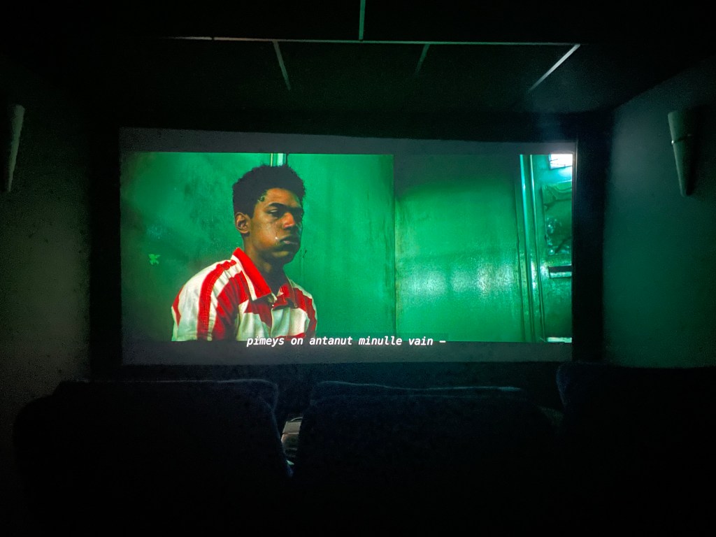 Mutta, mutta, mutta. Vaisuksi jäi fiilis tänään ja suoraan sanottuna ehkä jopa aavistuksen pettymykseksi. Leffa käsittääkseni oli Atmos-leffa, mutta fiilis yläkaiuttiminen käytöstä ei tällä kertaa jäänyt kovinkaan vahvaksi. Joo, kyllähän ne siellä oli ja aina välillä myös hyvin käytössä. Mitään erityistä fiilistä ei kuitenkaan syntynyt. Sama fiilis myös liittyen sivu ja taka osastoon, kyllä ne siellä huomaa ja tavallaan toimii, mutta kyllä leffassa on silti todella vaikea saada ääniä kohdistumaan ja tuntumaan aidoilta. Matka kaiuttimiin on todella pitkä, ja jos haluaa äänen saada hyvin kohdistettua pitää ihan todella kuunnella ja ajatella missä nyt jotain saattaisi tapahtua. Yleisesti ottaen, tuntuu vaan omaan korvaan (etenkin tänään), että äänet yksinkertaisesti on vaan liian hiljaisella, ja siksi äänistä ei saa tarpeeksi irti. Oma fiilis, mutta näin se vaan tänään tuntui olevan. Samaa voi myös sanoa subbareihin ja kaikki rähähdyksiin ja autojen ääniin. Ei vaan tänään kuulostanut niin murealta kuin olisin toivonut, verrattuna esim. Tenettiin korvat eivät todellakaan olleet tänään kovilla.