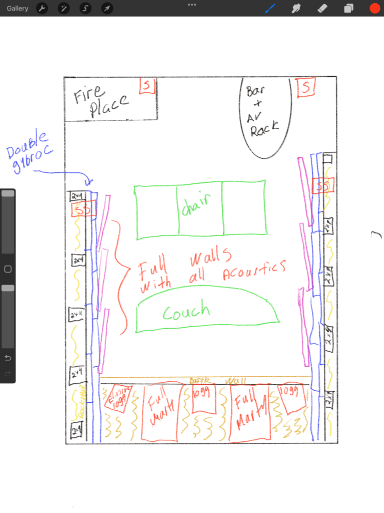 Tuosta syntyi sitten myös ajatus, että huoneen olisi voinut kääntää toisin päin, ja tehdä vihdoin se sata prosenttisesti leffoille pyhitetty tila. Tuolloin lapsen huoneesta olisi tullut leffahuoneen uusi perä ja nykyisestä baaritilasta oma uusi huone, joko itselle tai muksulle. Pitkän harkinnan jälkeen tuo ajatus tuli kuitenkin haudattua, kahdesta syystä. En ollut sitten kuitenkaan valmis luopumaan vieläkään baaritilasta ja uutena huoneena tuosta olisi tullut kuitenkin todella pieni. Leffahuoneen kokokaan ei olisi juuri muuttunut, mutta molempien tilojen kaikki pinnat olisi käytännössä tarvinnut tehdä tuolloin uusiksi, siihen ei nyt ihan ole kuitenkaan varaa. Projekti saa siis jatkua alkuperäisen suunnitelman mukaan.