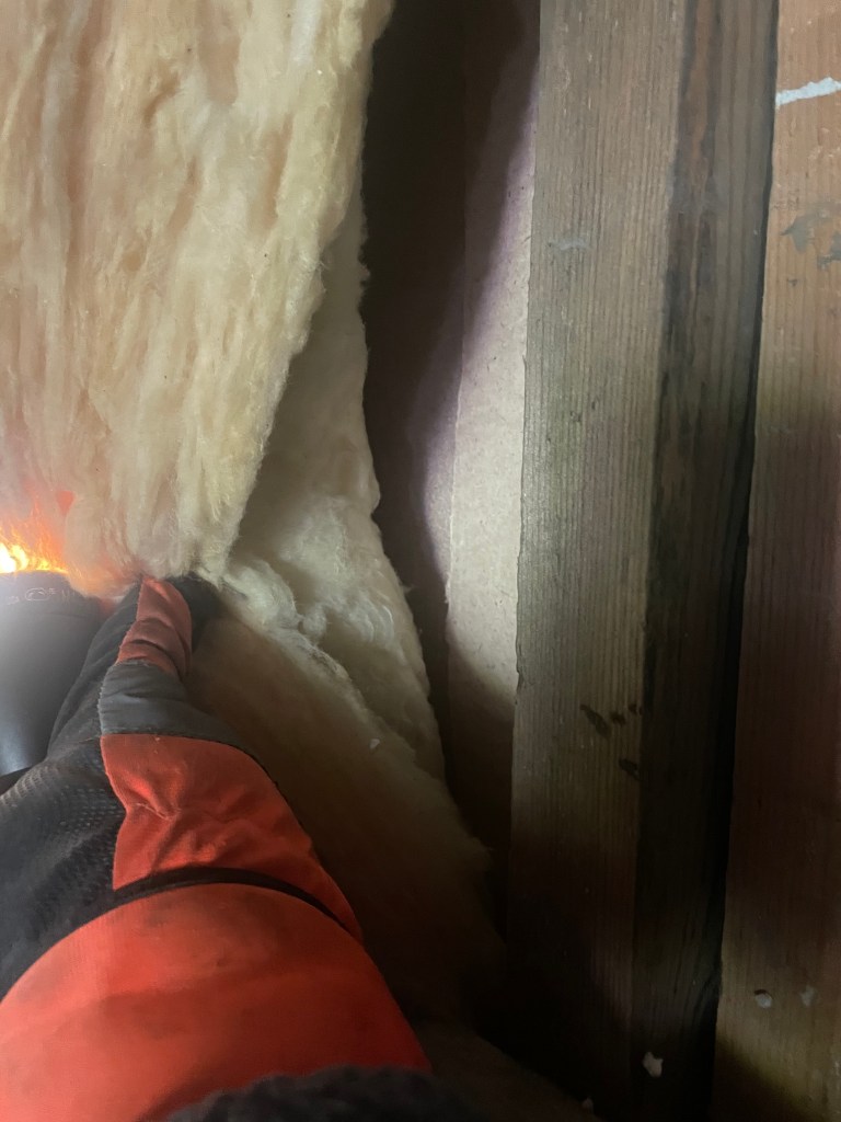 Mutta mitä siellä sitten on tällä hetkellä meneillään. Lähinnä nyt tässä vaiheessa edessä on ollut vielä vanhan huoneen rakenteiden purkua, ja sen kanssa onkin ollut haasteita. Suurimpana haasteena on ollut se, että huoneen leffasohvat on enemmän ja vähemmän rakennettu paikan päällä, eli niitä ei saa huoneesta oikein pois, eikä purettua tai siirrettyä. Lisäksi kun toisen sohvan päällä on nyt iso kasa seinistä purettua villaa, niin tila on todella tunkkainen, pimeä ja ahdas. Siitä huolimatta kaksi seinää on nyt purettu ja hieman jo uuttakin aloitettu. Itseasiassa sellainen yllätyskin tuli vielä vastaan, että kuvittelin huoneen kaikkien seinien olevan puhdasta betonia, mutta tuo toinen sivuseinässä olikin sitten suureksi yllätykseksi panelien takana vähän villaa ja toisen huoneen lastulevy. Ei ihme, että äänet on mennyt läpi toiseen huoneeseen.