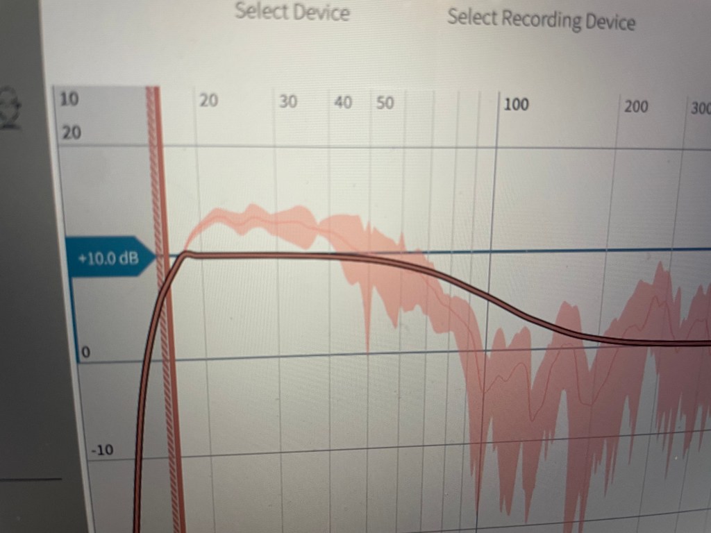 Toinen suorakaiteenmuotoinen hieman lyhennettynä takaisen toisen päälle ja valmista. Sen jälkeen sitten enää kalbrointi ja kaikki on valmista. Kalibrointi onnistui tällä kertaa helpommin kuin ikinä ennen. Mietin, jopa että teinkö nyt jotain väärin, mutta kyllä se nyt vaan on niin, että neljällä subbarilla elämä on vaan niin paljon helpompaa. Kaikki neljä oli helposti ja nopeasti integroitu ja sen jälkeen Arcamin ja Dirac Liven parin. Tässä se kaikista suurin onnistumisen hetki sitten tulikin. Yleensä tuo bassokäyrä on heitellyt todella rajusti tässä kohtaa kun mittauksia tulee monesta eri kohdasta. Tällä kertaa seat to seat consistancy on kuitenkin aivan jäätävän hyvällä tasolla ja jotain aivan eri luokkaa kuin aikaisemmin. Nyt jokaisella tuolilla on mahdollista saada oikeasti hyvää bassontoistoa, vaikka 90% leffoista katsomossa onkin vain yksi katsoja, keskellä huonetta. Manittakoon vielä, että EQ:ta ei tuohon käyrään tarvinnut juuri nimeksikään ja headroomia riittää yllin kyllin.