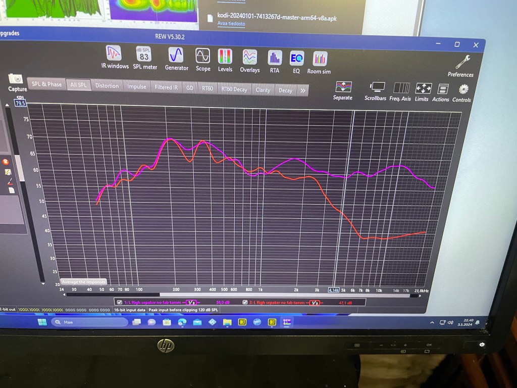 Niin muuten, tämäkin asennus tuli tehtyä Mareksoundista lähes kymmenen vuotta sitten hankituilla Fabricmate-kangaslistoilla. Aivan älyttömän hyvä systeemi, jolla silloin tein koko seinät, ja sen jälkeen käyttänyt niitä aina uudelleen ja uudelleen. Tällä hetkellä niillä on tehty ainaki koko etuseinä, ja nyt nuo pätkät sivua. Ne on helppoa ihan perus sahalla leikata, kangas upotetaan rautakaupan pakkelistalla ja pizzaleikkurilla, ja mikä parasta, lopputulos on aina siis ja hyvännäköinen. Instasta voit käydä katsomassa hieman lisää juttua ja videoita aiheesta.