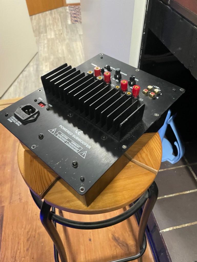 Loppuun vielä pari sanaa muusta puuhailusta viikolta. Löysin nimittäin Torista aika edullisesti Hypexin FA501 mallisen subwoofer päätteen. Yksi kanava, 500w tehoa. Miksi tälläisen sitten hankin niin syynä näissä itse tehdyissä tuoleissani olevat Buttkickerit, jotka ovat kovasti nyt olleet pohdinnan alla, koska yksi seuraaja oli yhteydessä ja sai miettimään asiaa. Toistaiseksi näitä kahta Fisherin Mini LFE:tä on siis ajanut ikivanha Plate Amp, jonka olen joskus nuorena asentanut itsetehtyyn subbariin. Siitä ei ole mitään tietoja, en tiedä watteja, en mallia, enkä mitään muutakaan. Se on hommassa toiminut varsin hyvin, mutta äänen säätämiseen ainoa mahdollisuus itse laitteessa on ollut gain, ja sen kanssa pelaaminen tuottaa omat haasteensa. Eli mitään tasaista ei oikein saa, vaan välillä ovat liian kovalla, välillä liian hiljaisella. Butkickerit ovat ajoittain myös saaneet aikaan ikävää kolinaa, en oikein tiedä miksi, mutta liittyy näihin säätöihin oleellisesti. Aikaisemmin tuo oli kytkettynä MiniDSP:hen, jolloin jotain käyrää pystyi säätämään, mutta kun taloon tuli kaksi Martyä lisää, ei tilaa ollut enää siihenkään. Lisäksi, Trinnov ei anna kalibroida ns. äänetöntä kanavaa, joten trinnovistakaan ei säätöjä voi tehdä, vaikka kanavia olisikin vapaana, tosin eipä ole niitäkään enää ylimääräisiä.