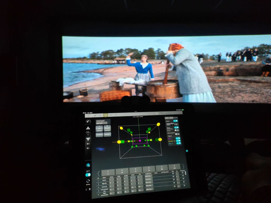 Sitten vielä loppuun osa kaksi Geneleceistä. Eli Genelecit tulivat olohuoneeseen ja ensimmäisenä olikin sitten niiden asentamisen aika. Jokaiseen kaiuttimeenhan tarvitaan siis virtajohto, verkkopiuha ja jollain johdolla toki myös ääni sisään. Yleensähän näitä kai aika paljon asennetaan niin, että ääni tulee digitaalisena sisään ja Genelecien oma dacci sitten hoitaan D/A muunnoksen. Matrixissa ei kuitenkaan ollut lainkaan digitaalista lähtöä, joten Matrix sai hoitaa muunnokset ja ääni tuli sitten Geneleceihin analogisena. Ei tämäkään mikään huono ratkaisu varmasti ole, mutta ei ehkä optimaalisin. Toinen suuri syy mitä erityisesti toivoin ja odotin Geneleceiltä oli tietysti GLM-kalibrointi softa. Ne joilla termi on uusi, niin kyseessä siis Genelecin oma automaattinen huonekorjain, vastaava kuin Audysseit, Diracit ja Optimzer Trinnovissa. Matrixissa ei ollut minkäänlaista huoneenkorjainta, ja se toki hieman harmitti. Etenkin kun kyseessä on suhteellisen vaativa tila, jossa toinen sivu on täysin avoin, niin ihan täysin ei nuo passiivi kaiuttimet päässeet parhaaseensa, vaikka hyvältähän nuo Quadralitkin tuossa kuulostivat.