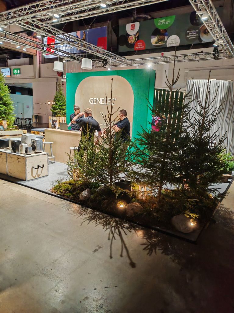 Genelecin näkyvyys ei messuilla kuitenkaan jäänyt tämän osaston ja upeiden 8361 varaan vaan Genelec näkyi messuilla muutenkin. Tai ainakin kuului. Oli nimittäin todella siististi aseteltu useita Genelecin katosta roikkuvia 4436 kaiuttimia reitin varrella olevan loungen ympärille. En tiedä kuinka moni tavallinen tallaaja noita oikeasti edes huomasi tai ymmärsi mistä on kyse, mutta osa Genelecin äänentoistoa on juuri se tyylikäs huomaamattomuus, tuo hyvä soundi tuskin keltään kuitenkaan jäi tuossa hetkessä huomaamatta ja moni joka kotiinsa hyvää musiikki kaipaa varmasti tuossa kohdassa alkoi vähintäänkin miettimään, että mitenköhän omaan kotiin saisi näin huomaamattoman mutta laadukkaan äänen. Äänentoisto ei kuitenkaan ole pelkkää ääntä, se on isolta osalta myös sisustuskysymys, aivan kuten itsellänikin nuo 8351:set. Toki sitten Genelecillä oli näkyvää äänetoistoa myös omassa Genelec kahvilassa, jossa kaiuttimet todella näkyvät ja kuuluvat. Siellä oli messujen aikana jotain artistiesityksiäkin ollut, omaan aikatauluun ne eivät tällä kertaa osuneet.