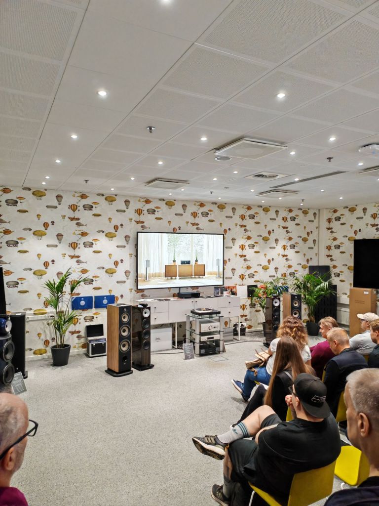 Muuten sitten messuilla oli aika sama meno kuin ennenkin, esittelijoitä oli hyvin laidasta laitaan ja esillä oli niin kuulokkeet kuin lp-levyt. Testaaminen ja kuuntelu edelleen keskittyy pää asiassa erilaisten kaiutinten vertailuun, vaikka laitteita taustalla on tuhansien ja taas tuhansien eurojen arvosta. Tällä kertaa mitään kotiteatteriin liittyvää en edes odottanut näkeväni, eikä siellä siihen liittyen yhtään mitään ollutkaan. Se mistä tosin tykkäsin, oli se, että todella moni oli kuitenkin tänä vuonna asentanut jonkinlaisen ruudun huoneen eteen, jotta katselusta tulee edes jollain tapaa hieman viihtyisämpää, ainakin itselleni. On siinä sitten pyörimässä musiikkivideo, mainosta tai vain maisemia, tuntuu se silti aina kodikkaammalta kuin pelkkä tyhjä ja tylsä seinä.