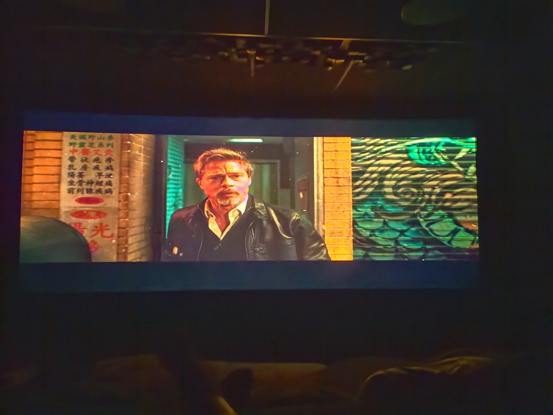Jos nyt pääsit tähän asti, niin varmasti kaikkia sitten kiinnostaa se kuva. Ja kyllä, tämä leffa olis kaikessa tummuudessaan hyvä osoitus siitä, kuinka tumma sriimattu kuvakin voi näyttää projektorilla todella loistavalta. Kuva oli vanhaan verrattuna erityisen tarkka ja kirkas, tuntui että tummalla taustalla kaikki valo, esimerkiksi juuri sade, vesilätäköt ja muut näyttää ihan älyttömän hyvältä. Toki edelleen HDR on sitten ihan oma lukunsa, ja kyllähän kaikki värit hyppäävät kuvasta aivan eri tavalla esiin. Olen lopulta todella positiivisesti yllättynyt kuvanlaadun parannuksesta, tälläistä en edes uskaltanut haaveilla, vaikka tiesin, että aika monta porrasta nyt otetaan kerrallaan eteenpäin. Netissä paljon puhutaan sanoilla dimishing return, eli kuinka jossain vaiheessa rahaa voi laittaa loputtomasti, mutta muutosten määrä pienenee kaiken aikaa. Tässä tapauksessa voin vielä hyvällä omalla tunnolla sanoa, että tämä hankinta antaa rahalle riittävästi vastinetta jotta asiaa ei tarvitse enempää miettiä.