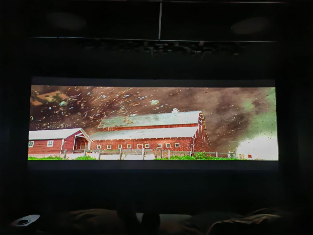 Äänien puolesta Twister on juuri sitä mitä odottaa sopii. Ei varmastikaan maailman monipuolisin miksaus, sillä leffa koostuu pitkälti dialogista ja pyörremyrskyistä. Kaikki myrskyihin liittyvä tuuli, sade ja lentelevät esineet ovat kuitenkin tehty juuri niin vakuuttavasti kuin se vaan nykytekniikalla on mahdollista. Twisterissä pääasiassa käytetään vain kahta kattokaiutinta, mutta silti kaikki kuulostaa juuri siltä kuin voisi kuvitella itse ollessaan myrskyn silmässä. Äänet ovat tarkat ja kunnioittavat kuvan tapahtumia hienosti. Onko tässä äänet sitten paremmat kuin siinä vuoden 2022 versiossa, sitä en tällä hetkellä pysty sanomaan, sillä sen katsomisesta on jo sen verran aikaa. Molemmat kuitenkin kuulostavat todella hyvältä, ja vertailuakin voisi jossain vaiheessa kyllä tehdä. Tämä kuitenkin on leffa, jonka voi katsella uudelleen ja uudelleen.