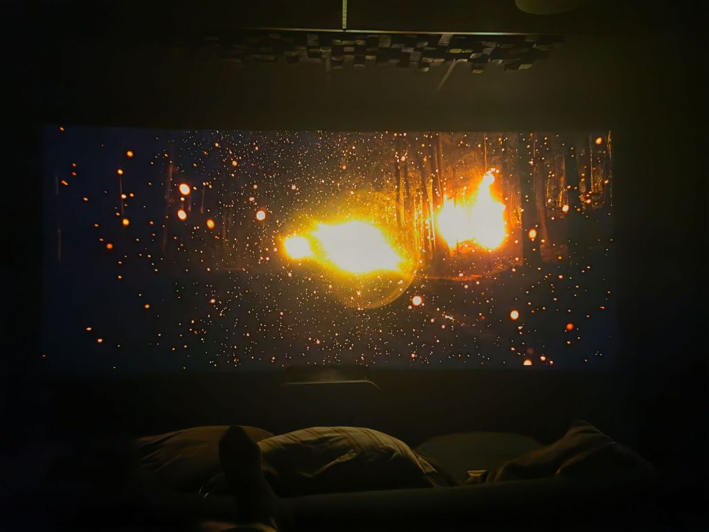 Uutta olen kuitenkin taas oppinut, nimittäin jotenkin oma pelko oli. että kirkkaammalla tykillä huoneen valoisuus tavallaan lisääntyy, niin kuin televisio tekee, mutta eihän tässä niin käynytkään. Kuva on toki kirkkaampi, mutta valkokangas ei sillä tavalla heijasta valoa kuin TV tekee, eli kuva on edelleen hyvin elokuvamainen, etenkin kun itsellänihän edelleen tuossa on harmaansävyinen kangas. Kaksi asiaa jossa eron kuitenkin näkee todella selvästi, eli kuva on todella paljon tarkempi ja ikäänkuin jokainen väri on todella paljon teärävämpi, kirkkaampi ja laadukkaampi. Toinen asia missä sitten todellinen ero vasta tuleekin esille on HDR, esimerkiksi kun testailin Super Mario leffaa, räjähdykset alussa ovat todella todella vakuuttavia. Ensivaikutelma siis on todella huikea!